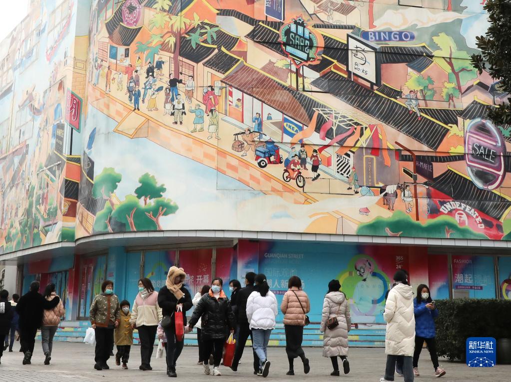 1月1日,人們在江蘇省蘇州市觀前商圈逛街購物。