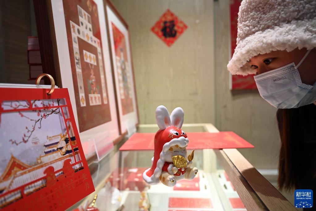 1月1日,游客在故宮絳雪軒文創商店內選購商品。