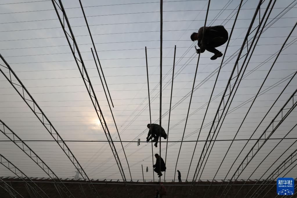 1月1日,河南省焦作市溫縣張羌街道馬莊村村民在建設溫室大棚。