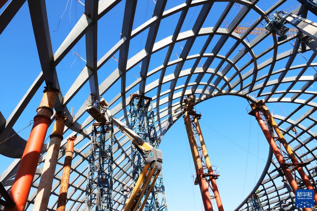 1月1日,浙江省臺州路橋機場改擴建工程現場,工人開展航站樓穹頂焊接作業。