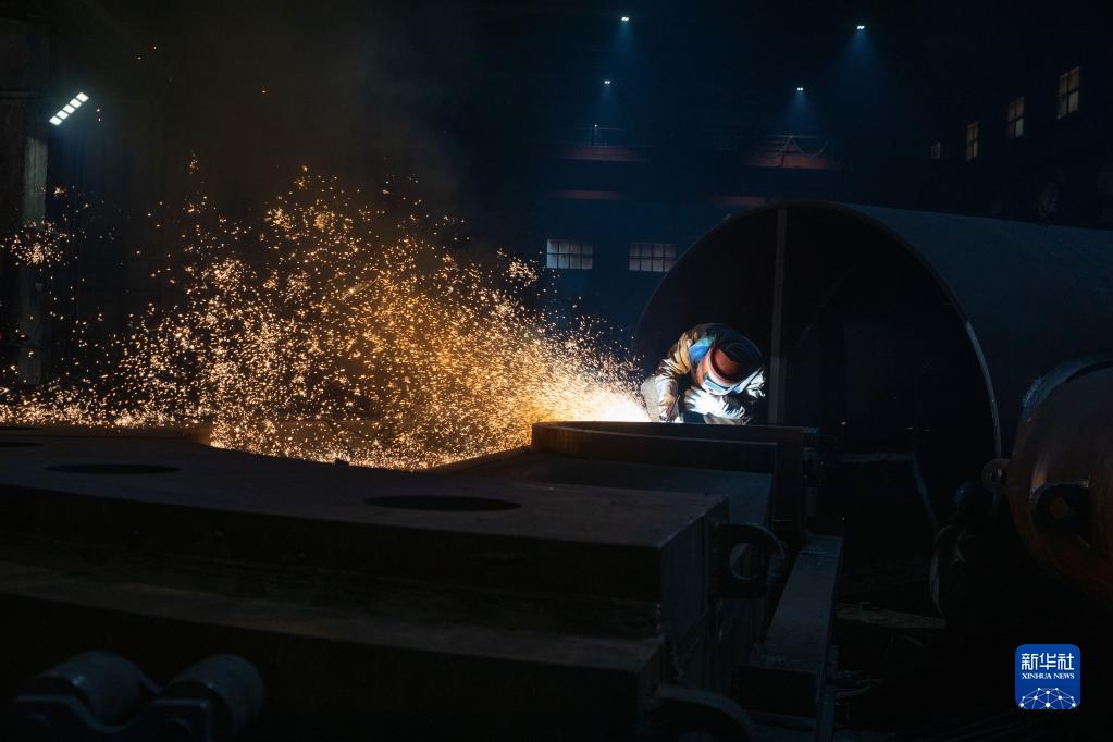 1月1日,在哈電集團哈爾濱電機廠有限責任公司生產車間,工人在生產作業。