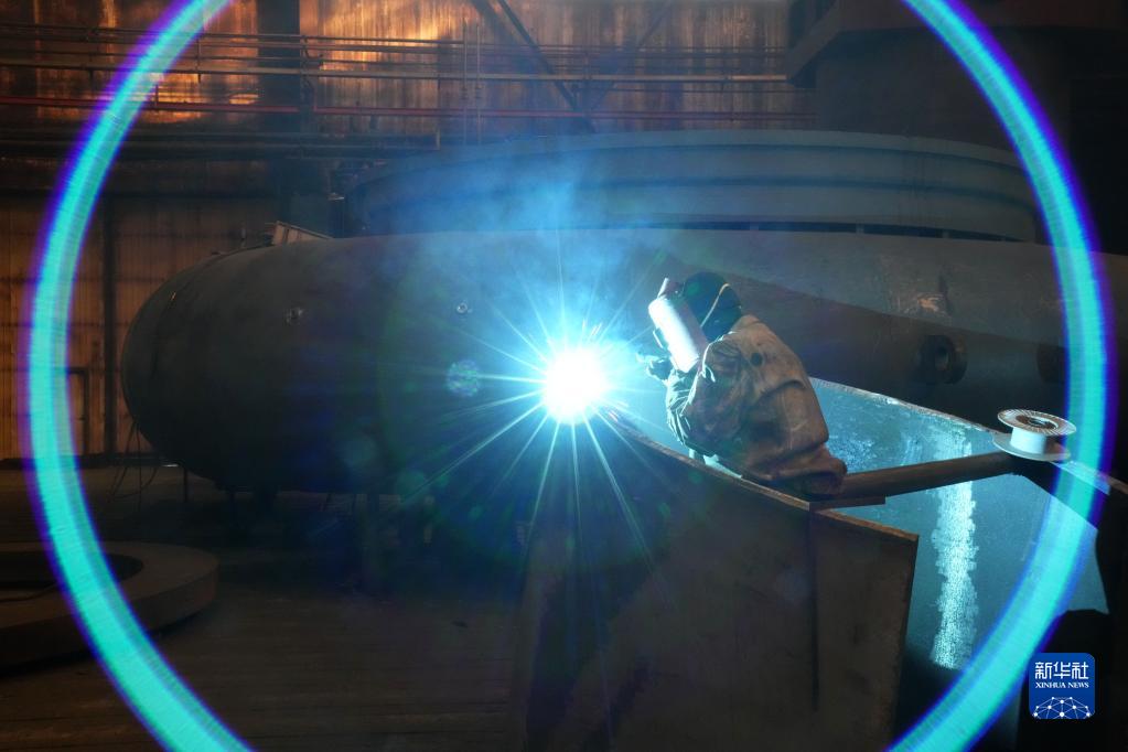 1月1日,在哈電集團哈爾濱電機廠有限責任公司生產車間,工人在作業。