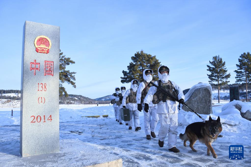 1月1日,駐守在黑龍江漠河北極村的北極哨所官兵巡邏在黑龍江界江邊防線。