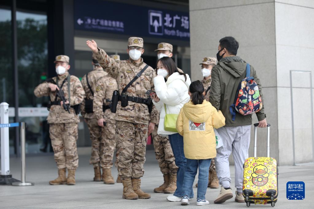 1月1日,武警安徽總隊合肥支隊官兵在合肥南站為過路旅客提供幫助。