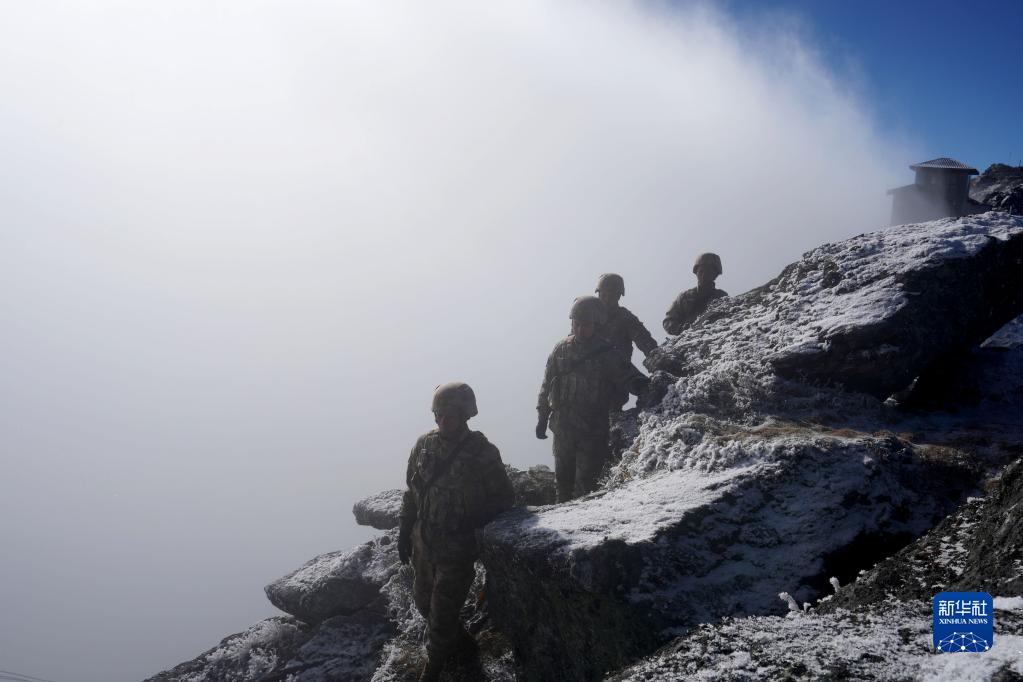 1月1日,在西藏亞東海拔4655米的詹娘舍哨所,邊防官兵踏上巡邏路。