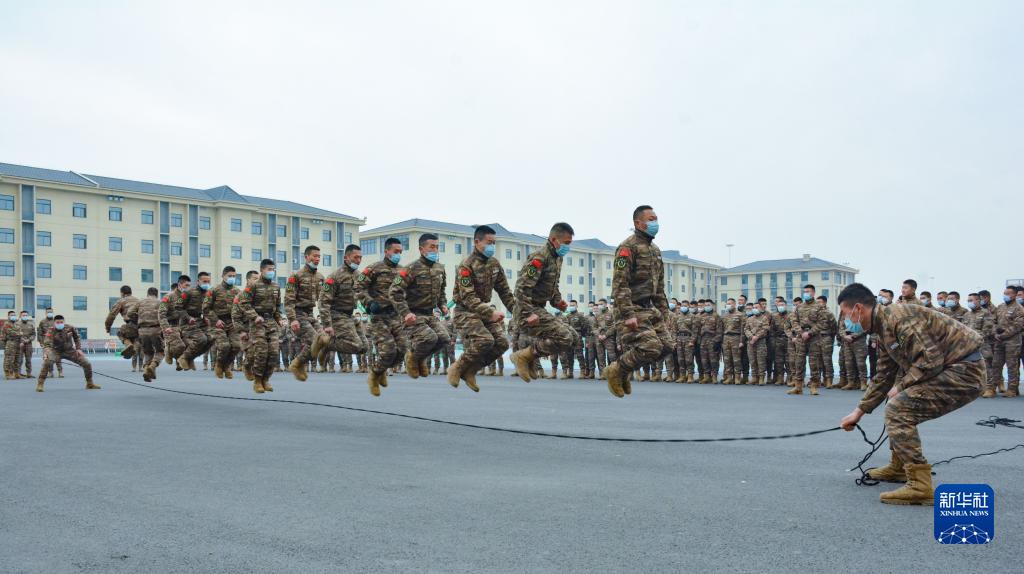 1月1日,武警安徽總隊機動支隊組織官兵開展跳繩比賽。