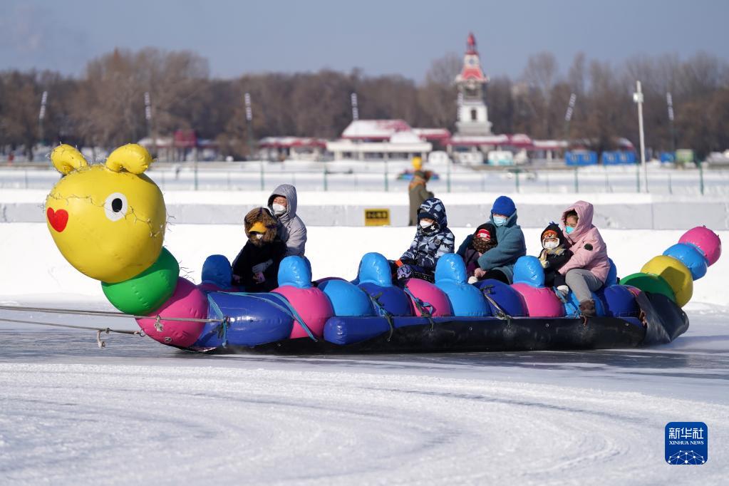 1月1日,游客在黑龍江省哈爾濱松花江冰雪嘉年華園區游玩。