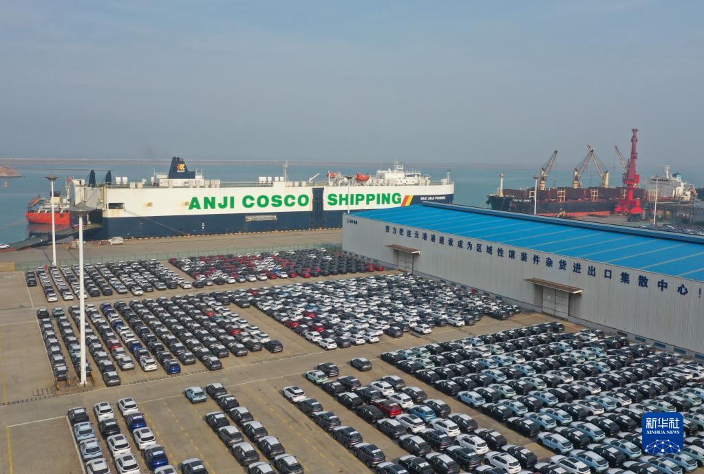 當日,1472臺出口車輛在江蘇連云港港碼頭裝船,該批車輛將由大型汽車滾裝船運往智利,這是該港2023年整船出口貨物第一單。