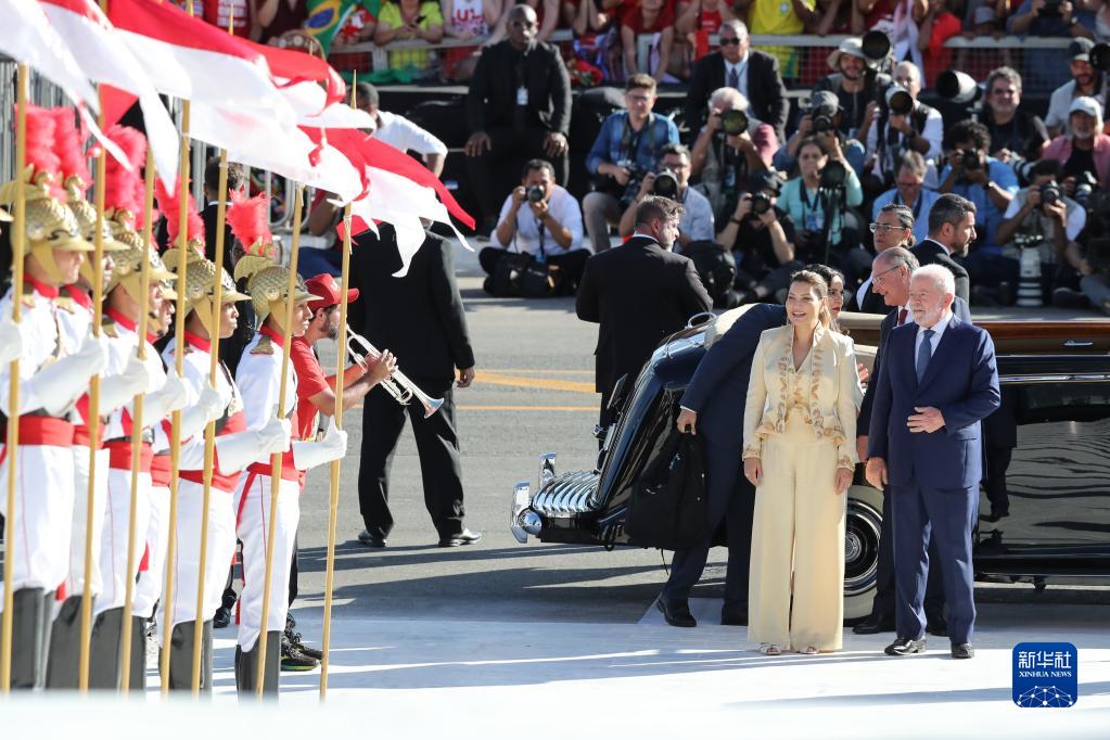 1月1日,在巴西首都巴西利亞,巴西總統盧拉(右一)抵達總統府“高原宮”。