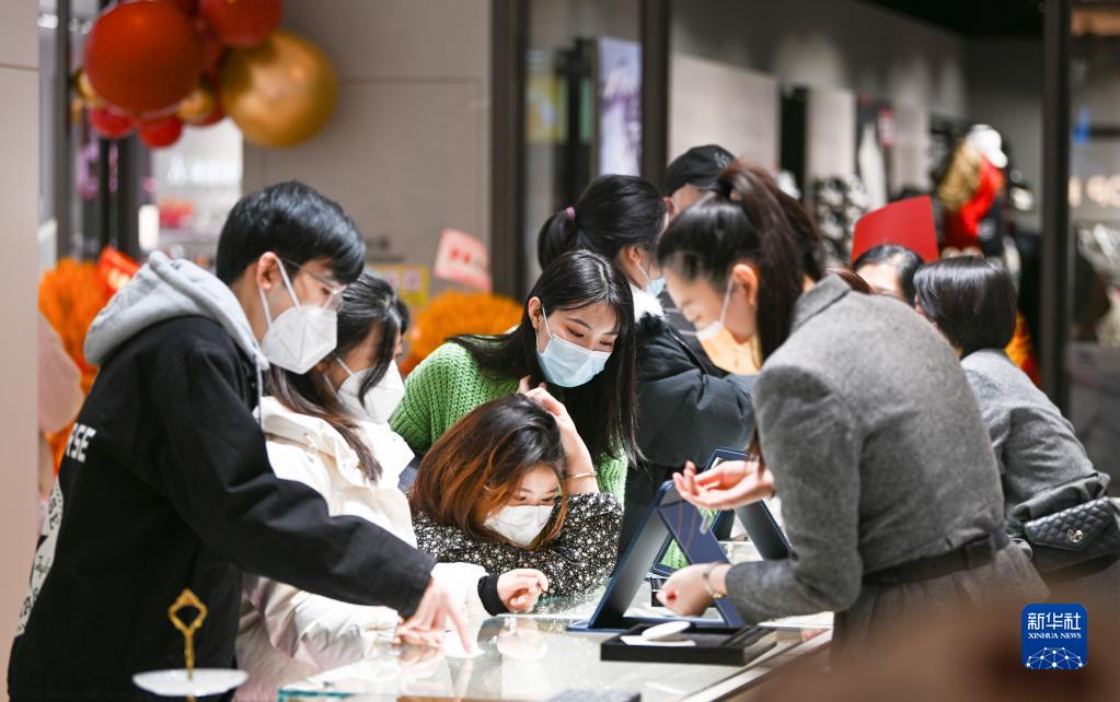 1月1日,消費者在天津金茂匯商場內選購商品。