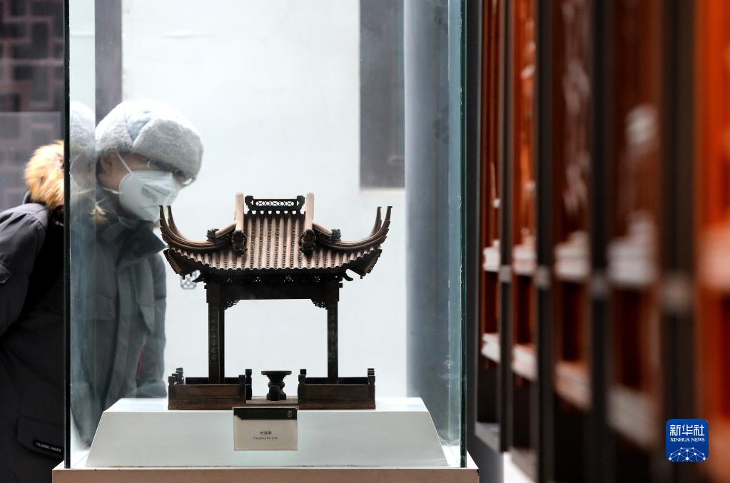 1月2日,一名游客在江蘇蘇州園林博物館參觀。
