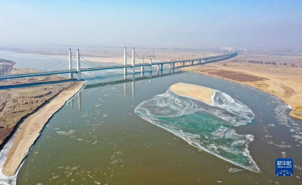 這是2023年1月2日拍攝的位于寧夏銀川市境內的黃河景觀(無人機照片)。