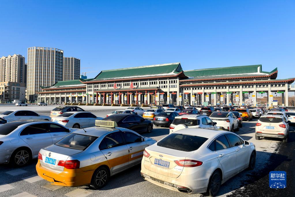 1月2日,車輛排隊駛入長春繞城高速公路長春南收費站。