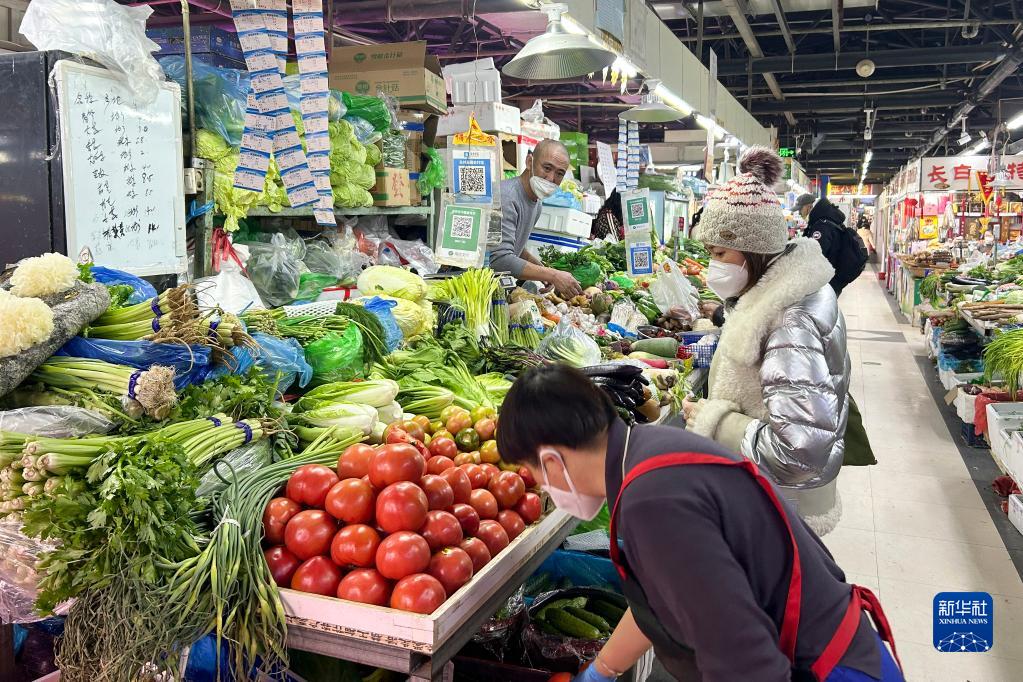 1月1日,市民在長春市桂林路商場農貿廳內選購蔬菜。