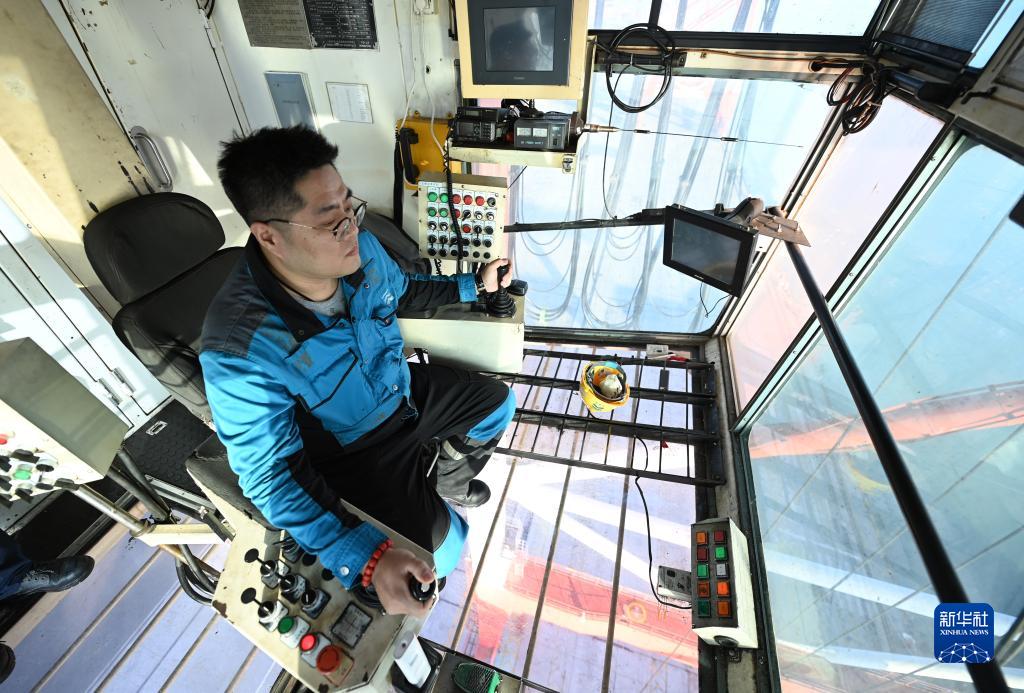 1月1日,岸橋司機在天津港聯盟國際集裝箱碼頭進行裝卸作業。