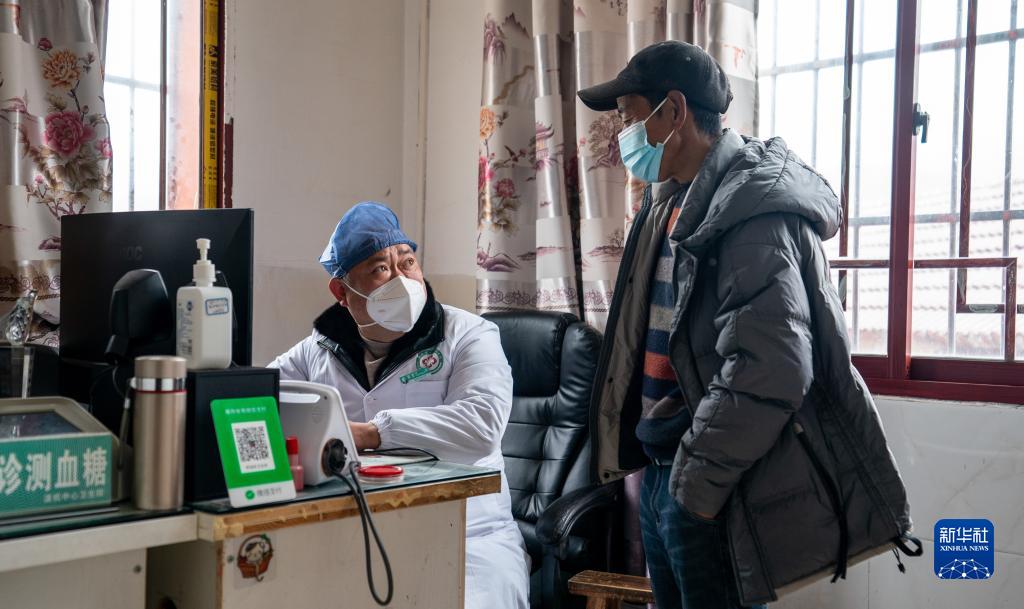 2022年12月30日,云南省昭通市鎮雄縣潑機鎮亨地村村醫陳波在接診。
