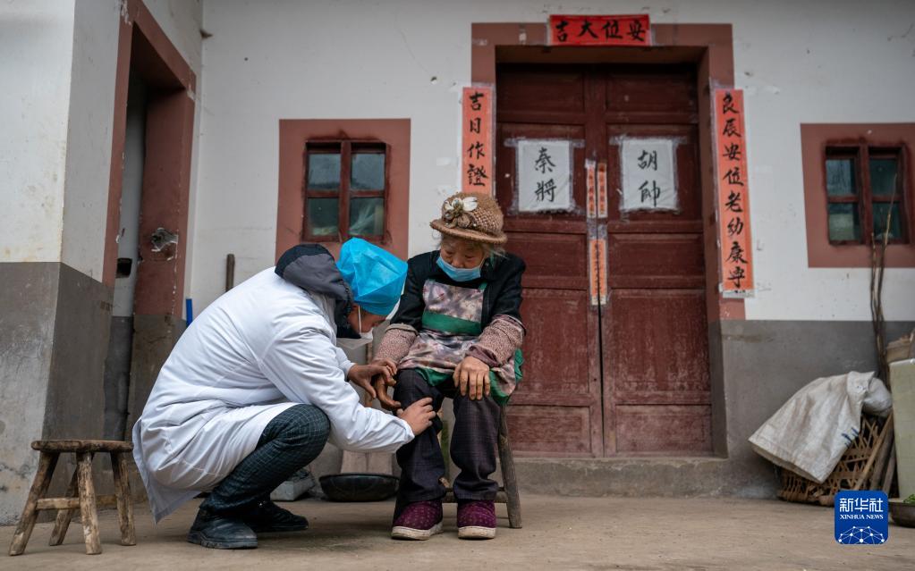 2022年12月30日,云南省昭通市鎮雄縣潑機鎮李官營村村醫付向朋上門為村民看病。