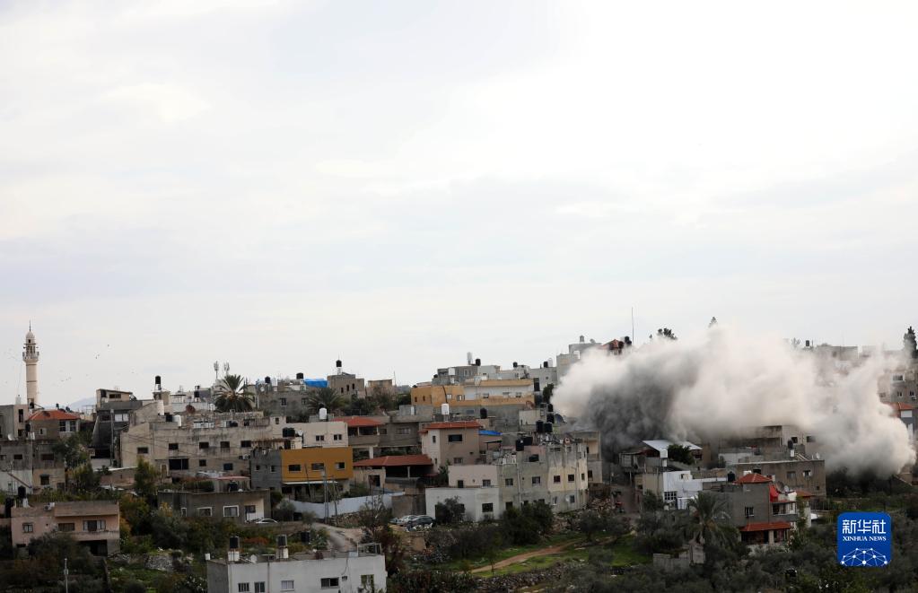 1月2日,在約旦河西岸北部城市杰寧,以色列軍隊對房屋實施爆破。