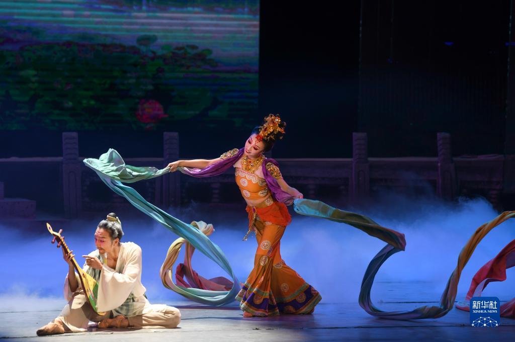1月2日,甘肅省歌舞劇院的演員在表演舞劇《絲路花雨》。