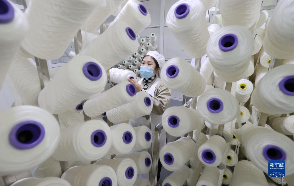 1月3日,在浙江省湖州市德清縣鐘管鎮一家紡織企業,工人在車間作業。