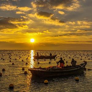 當日,在山東省榮成市尋山街道愛倫灣海洋牧場,漁民駕駛漁船在海上忙碌著,呈現一幅“海上冬耕”的畫面。