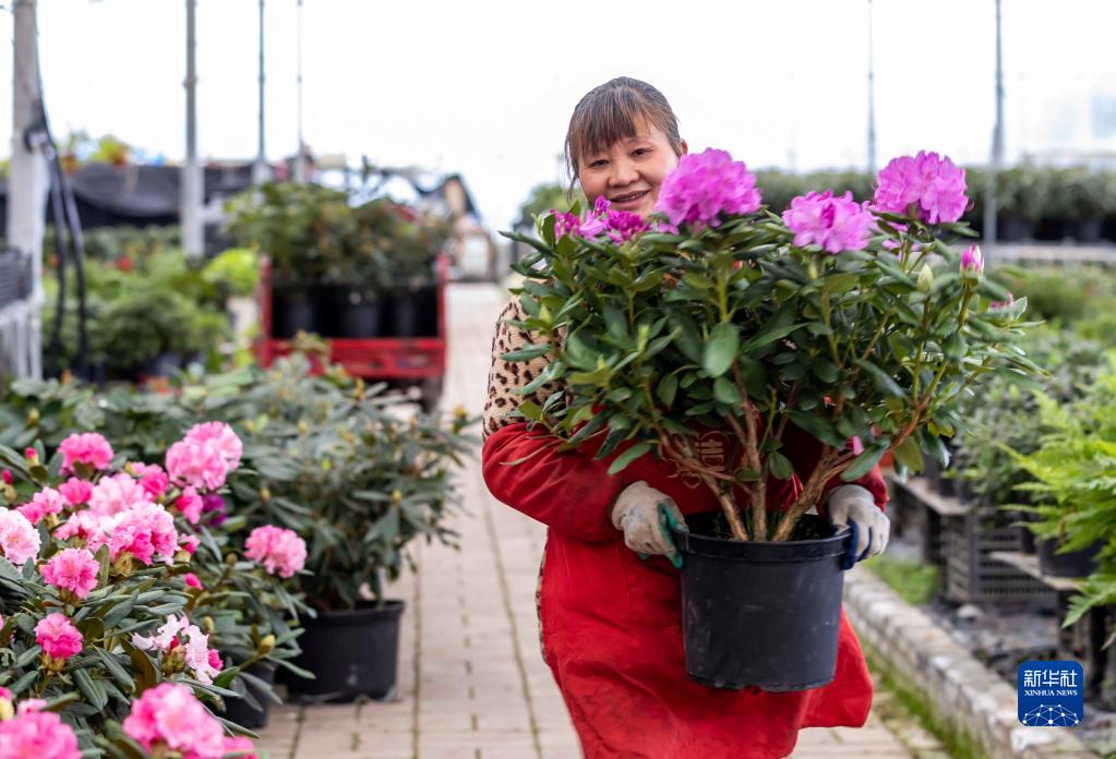1月3日,村民在貴州省畢節市百里杜鵑管理區匯境花卉科技園管護花卉。