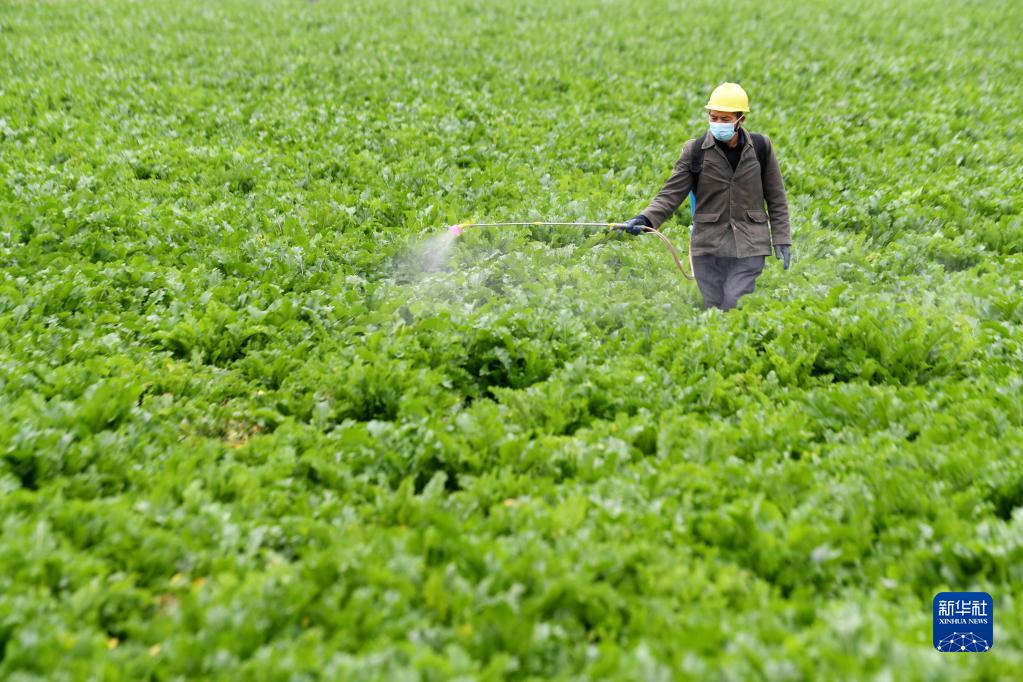 1月3日,農民在貴州省黔東南苗族侗族自治州榕江縣車江壩區蔬菜基地噴施葉面肥。