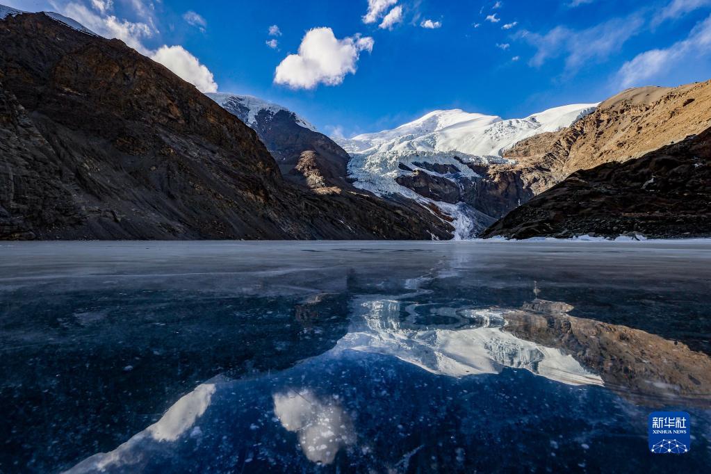 崗布錯又名“卡盯寺米”,位于西藏山南浪卡子縣崗布溝內,海拔約5200米。冬季的崗布錯湖面冰層厚達數米,平滑如鏡,表面呈藍色,晶瑩剔透。