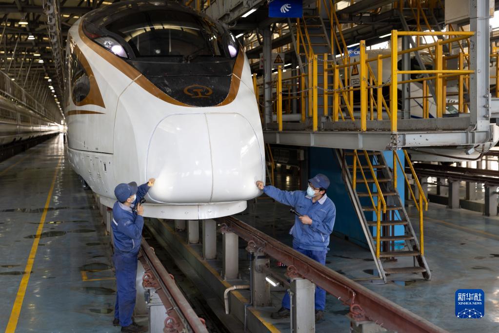 2023年春運即將到來,上海動車段虹橋動車運用所加緊開展高鐵檢修工作,保障春運安全。