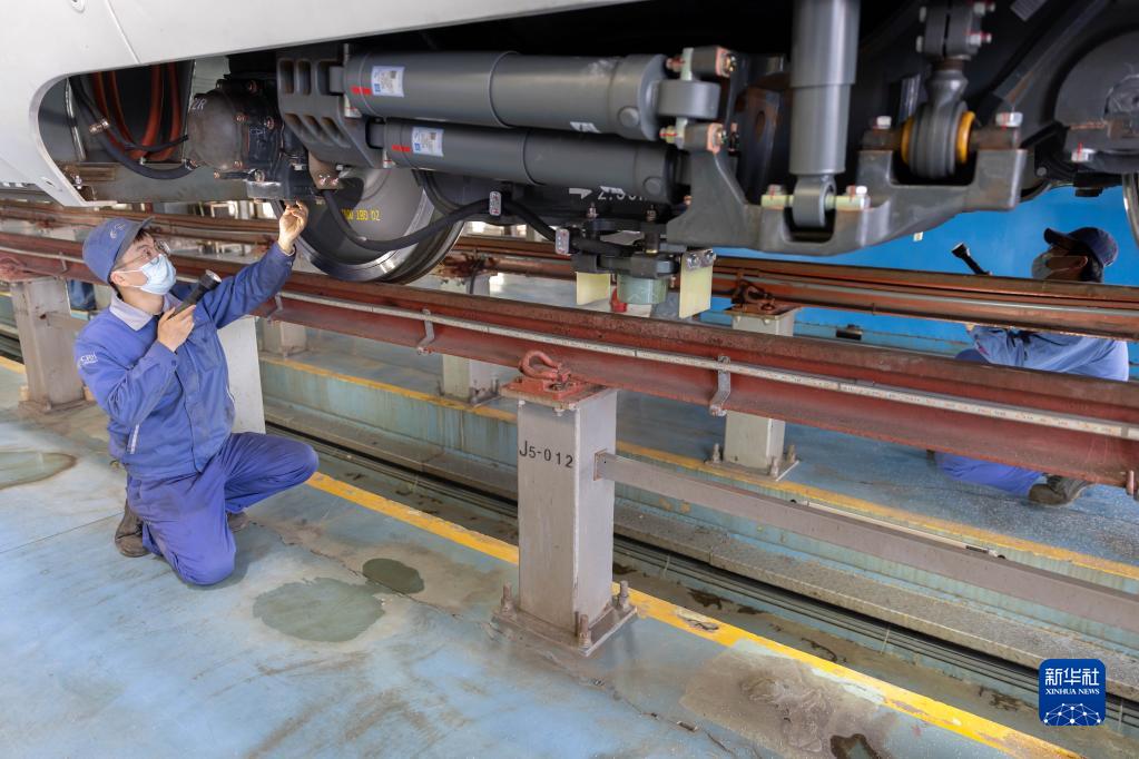 2023年春運即將到來,上海動車段虹橋動車運用所加緊開展高鐵檢修工作,保障春運安全。