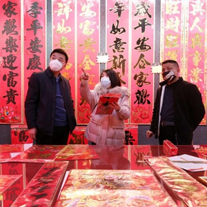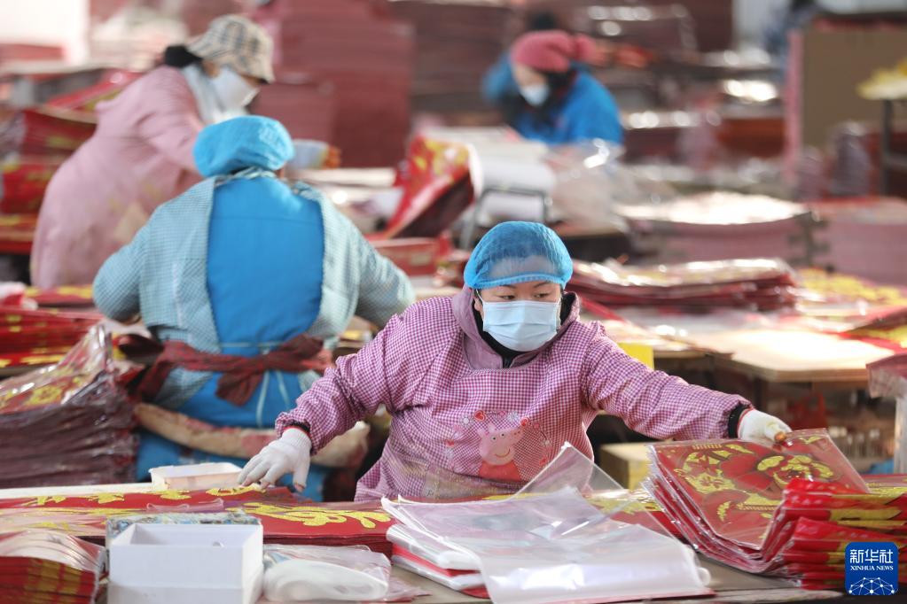 春節臨近,河南省焦作市溫縣岳村街道呂村印刷的春聯俏銷,村民們加緊趕制、銷售大紅春聯和年畫,一派紅紅火火的繁忙景象。