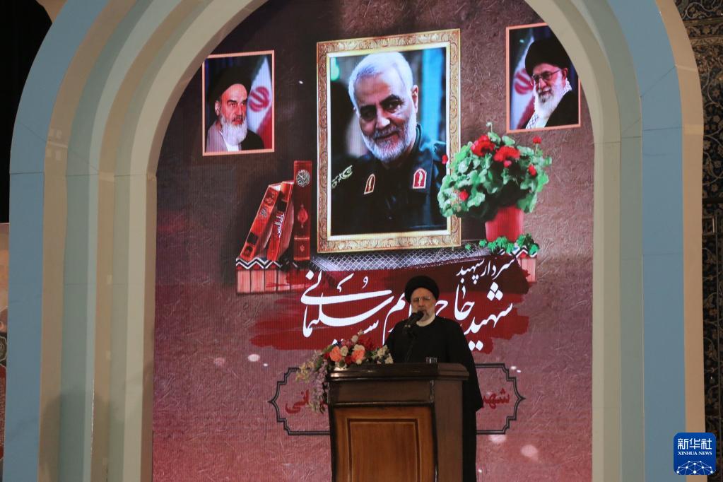 1月3日,伊朗總統萊希在首都德黑蘭舉行的悼念高級將領蘇萊曼尼遭美軍空襲身亡三周年大型集會上發表講話。