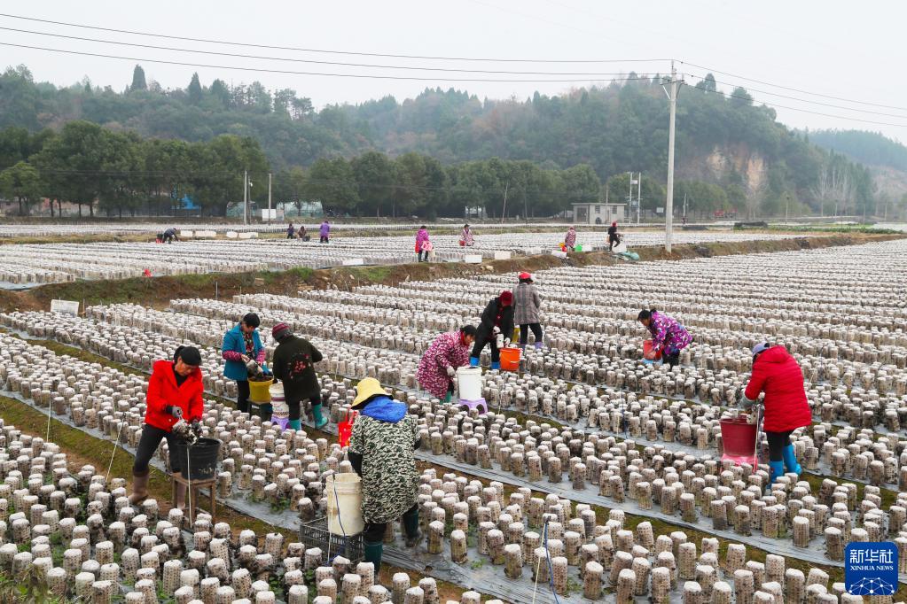 1月3日,湖南省永州市新田縣新圩鎮長富村村民在采摘黑木耳供應市場。