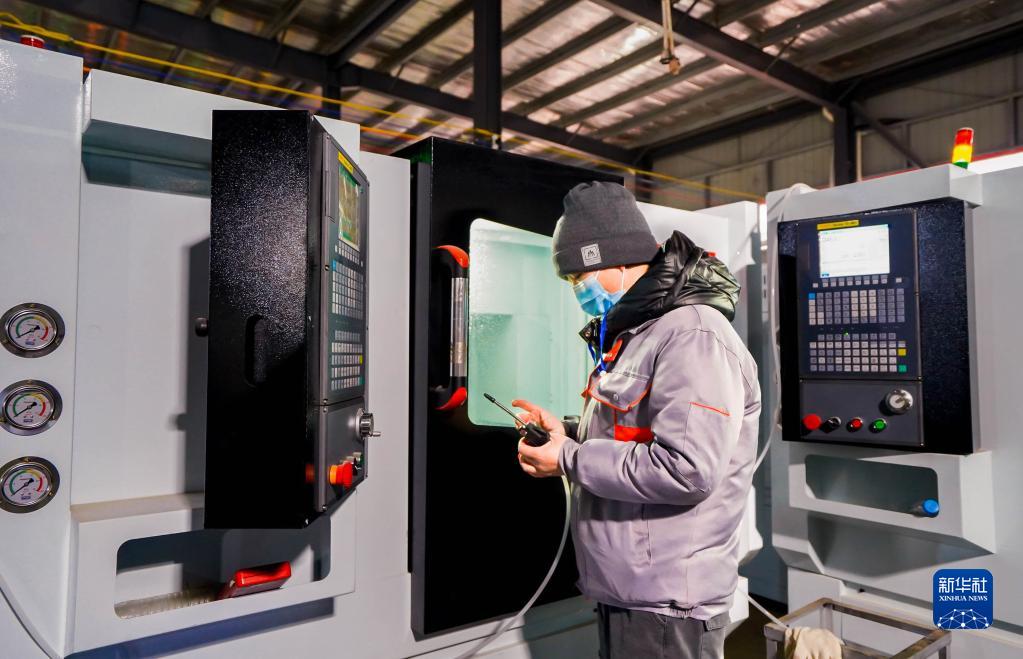 1月4日,在四川省會東縣小岔河特色產業園區一家汽車零部件企業的生產車間,一名在此就業的移民群眾在工作中。