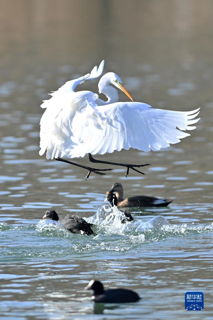 時下,在山西太原的“母親河”汾河邊,成群的候鳥翩翩起舞,吸引不少游人和攝影愛好者。