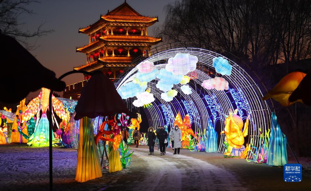 2022年12月31日,游客在沈陽迎春燈會上參觀游玩。