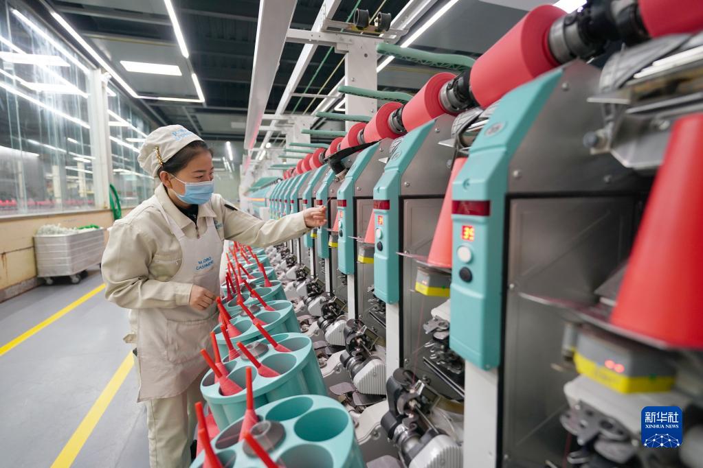 1月4日,河北南冠科技有限公司工人在生產羊絨紗線。
