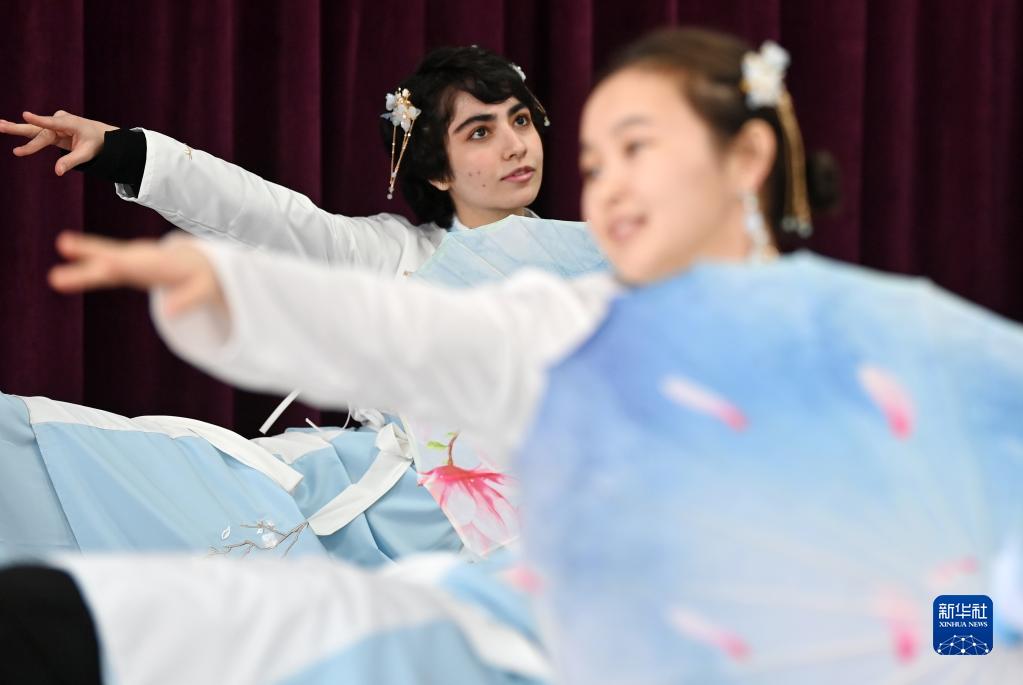 當日,天津大學國際教育學院的留學生為參加“校園春晚”加緊排練文藝節目。他們身穿漢服演唱中文歌曲,排練傳統古典舞蹈等節目,感受中國傳統文化的魅力。