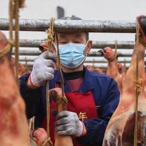 臨近新春佳節,浙江省金華市的火腿企業開足馬力生產金華火腿,作為特色年貨供應節日市場。