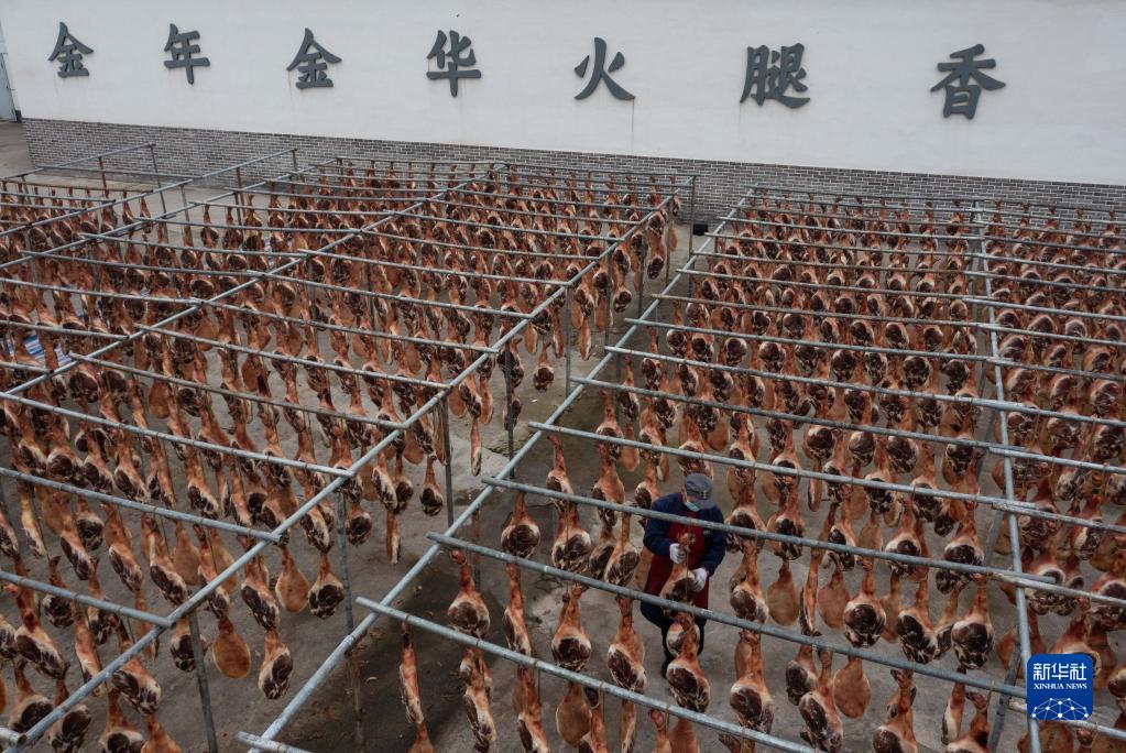 臨近新春佳節,浙江省金華市的火腿企業開足馬力生產金華火腿,作為特色年貨供應節日市場。
