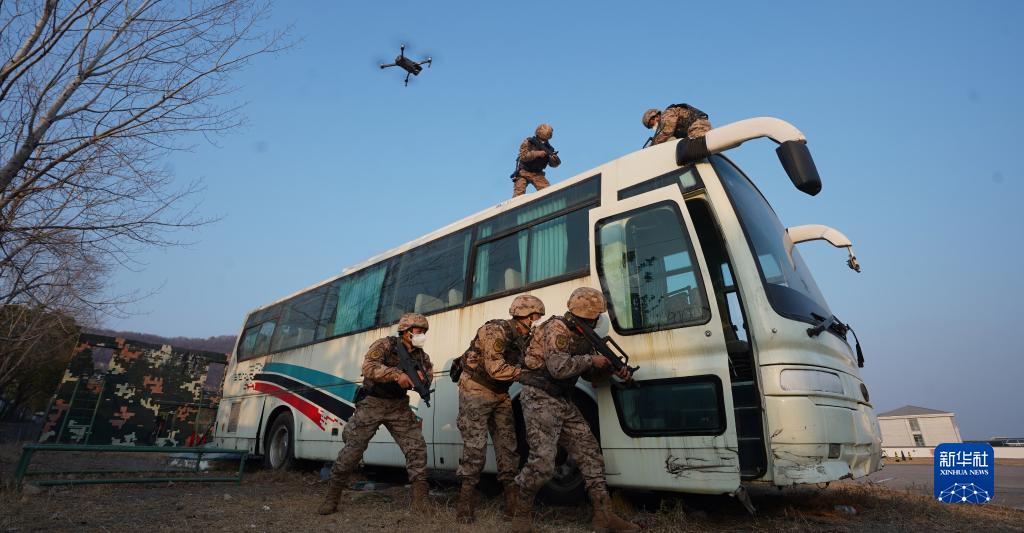 1月3日,武警安徽總隊蚌埠支隊組織特戰隊員開展公交車反劫持訓練。