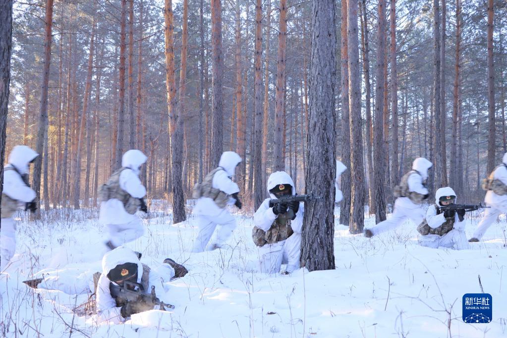 1月4日,駐守在黑龍江漠河北極村的北部戰區陸軍某邊防旅北極哨所官兵在極寒天氣下組織戰術訓練。