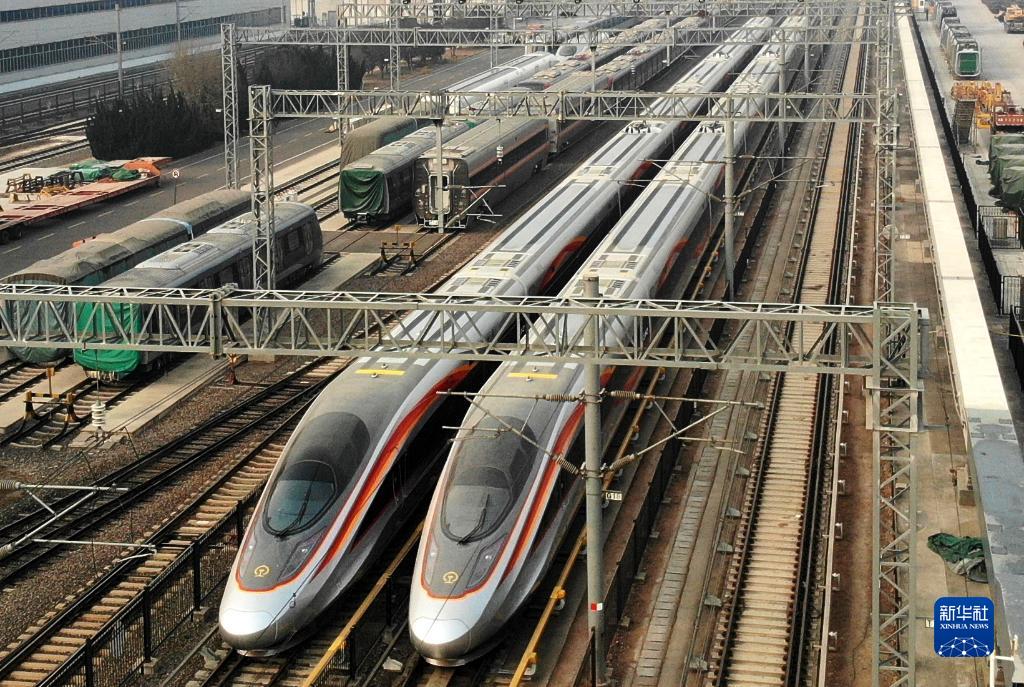 1月4日拍攝的兩列“復興號”智能動車組(無人機照片)。