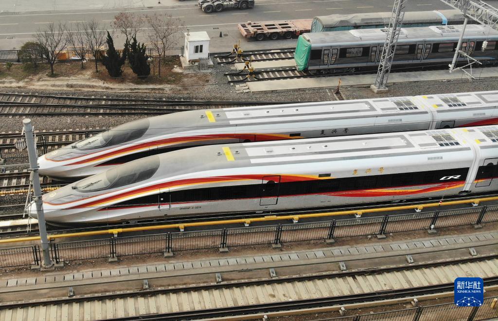 1月4日拍攝的兩列“復興號”智能動車組(無人機照片)。