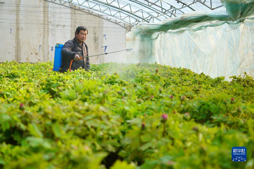 春節前夕,河北省柏鄉縣1000余畝錯季牡丹含苞待放,花農們忙著管護花卉,以滿足節日市場需求。柏鄉縣是“中國牡丹文化之鄉”,近年來,該縣持續推進農業產業結構調整,結合市場需求,采取“公司+專業合作社+農戶”的經營模式,引導農民發展錯季牡丹種植,有效拓寬種植戶的增收渠道。