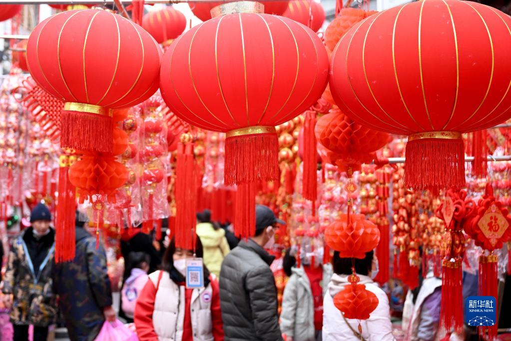 春節臨近,年味漸濃,不少合肥市民來到城隍廟市場選購春聯、燈籠等新春飾品,迎接新春佳節的到來。