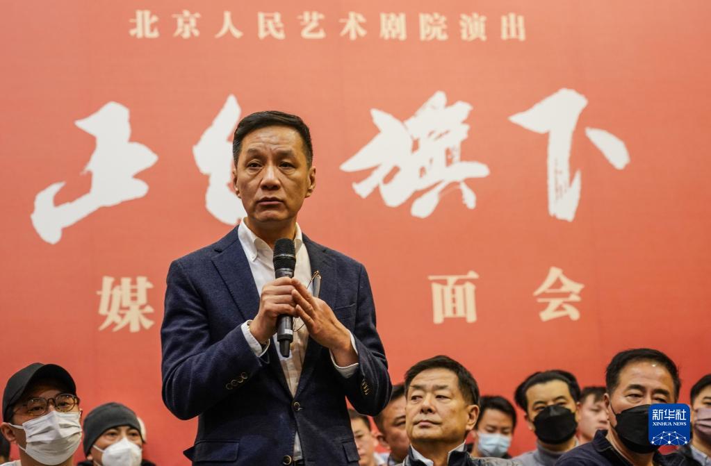 1月5日,在北京人藝排練廳,北京人藝院長、導演馮遠征在媒體見面會現場與記者交流。