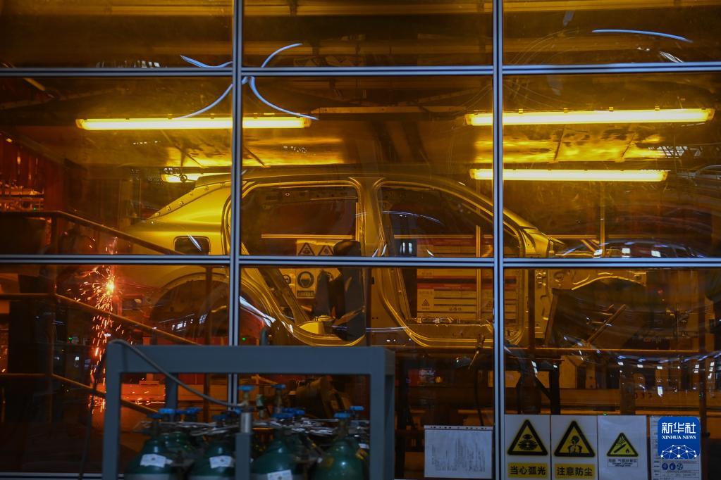 1月5日,工人在領克汽車浙江余姚工廠焊裝車間作業。