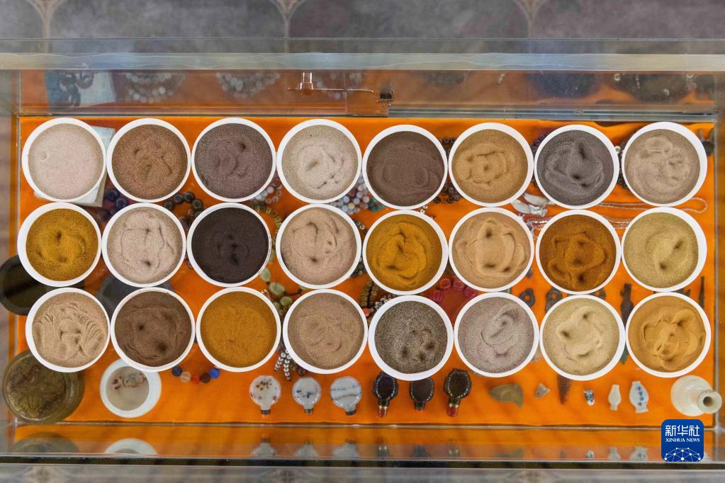 1月4日拍攝的阿拉騰畢力格挑選的不同顏色的沙子。
