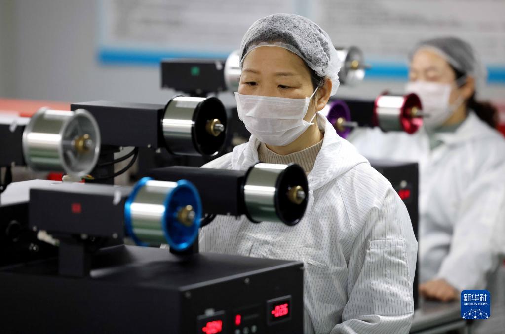 1月5日,在合肥市瑤海區長三角數字科技示范園,安徽華晶微電子材料科技有限公司的員工在集成電路鍵合絲生產線上作業。